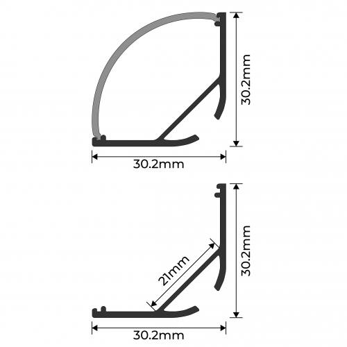 The EXTA7-B is a 1M corner mounted aluminium extrusion in a silver finish, supplied in a pack of 10. With a 30.2mm x 30.2mm profile, it accommodates LED strip lighting up to 20mm PCB width, making it ideal for creating angled lighting effects in corners and architectural spaces. The extrusion offers robust protection for LED strips, effective heat dissipation, and a clean, professional finish. When used with diffuser covers, it delivers smooth and even illumination for both residential and commercial applications.