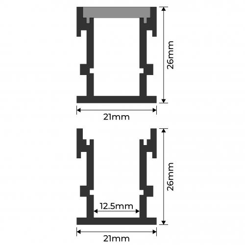 The EXTA9-B is a 1M floor mounted aluminium extrusion in a silver finish, supplied in a pack of 10. With its 21mm x 26mm profile, it is suitable for LED strip lighting up to 12mm PCB width and provides a sturdy housing for floor-level lighting applications. Designed for pathways, staircases, and commercial spaces, this extrusion offers durable protection while creating practical, low-level illumination. The silver aluminium construction ensures effective heat dissipation and long-term reliability, with the option to add diffuser covers for smooth and even light distribution.