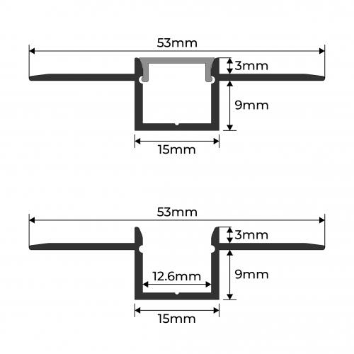 The EXTA13-BB is a 1M plaster-in aluminium extrusion in a silver finish, supplied in a bulk pack of 100. With a 50.7mm x 9mm profile, it is designed for LED strip lighting up to 12mm PCB width and installs directly into plasterboard walls or ceilings to achieve a seamless, trimless recessed finish. The strong aluminium body provides excellent heat dissipation and long-term protection for the LED strip, while diffuser covers can be added for smooth, even illumination. Perfect for large-scale residential, commercial, and architectural projects.