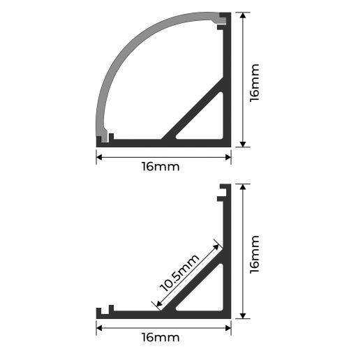 The EXTA6-2M-BK-B is a 2M corner mounted aluminium extrusion in a black finish, supplied in a pack of 10. With a 16mm x 16mm profile, it is designed for LED strip lighting up to 10mm PCB width and provides angled illumination for neat corner installations. The black finish offers a stylish, modern look that blends well with contemporary interiors, retail environments, and architectural projects. Built from durable aluminium, it delivers reliable heat dissipation and long-term protection for LED strips. Diffuser covers can be added to ensure smooth, uniform light distribution.