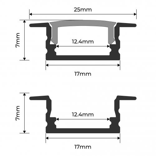 2M Recess Mounted 17 x 7mm Silver Aluminium Extrusion - Pack - 10