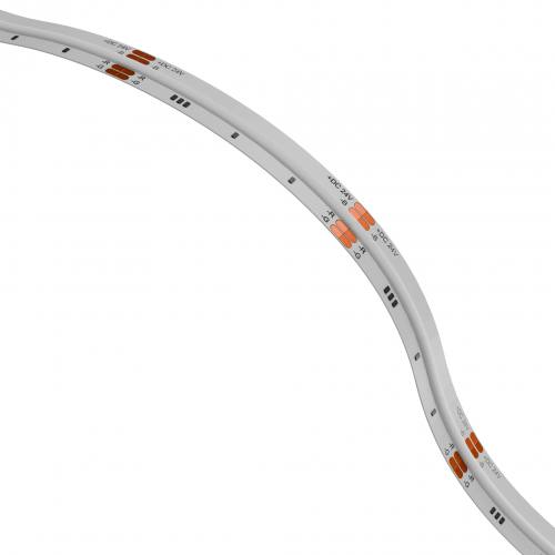 The DOB Series of diffused onboard taps offers our customers a simple way of obtaining a diffused light, where there is the potential for LED's being reflected, or where space constraints make using an extrusion impossible.These 24VDC tapes area available in IP20 or IP65 variants, with light outputs of 2700K,3000K, 4000K, 5000K or 6000K. RED, Green, Blue & Amber variants are also available on request.Each 5 meter reel is terminated both ends with 300mm of DC cable. If you want to run more than a 5 metre length then you must connect the reels in parallel.Note: The IP65 rated tape has a 8mm PCB, but is encapsulated in a filled silicone sleeve which makes the total with of the product 12mm.